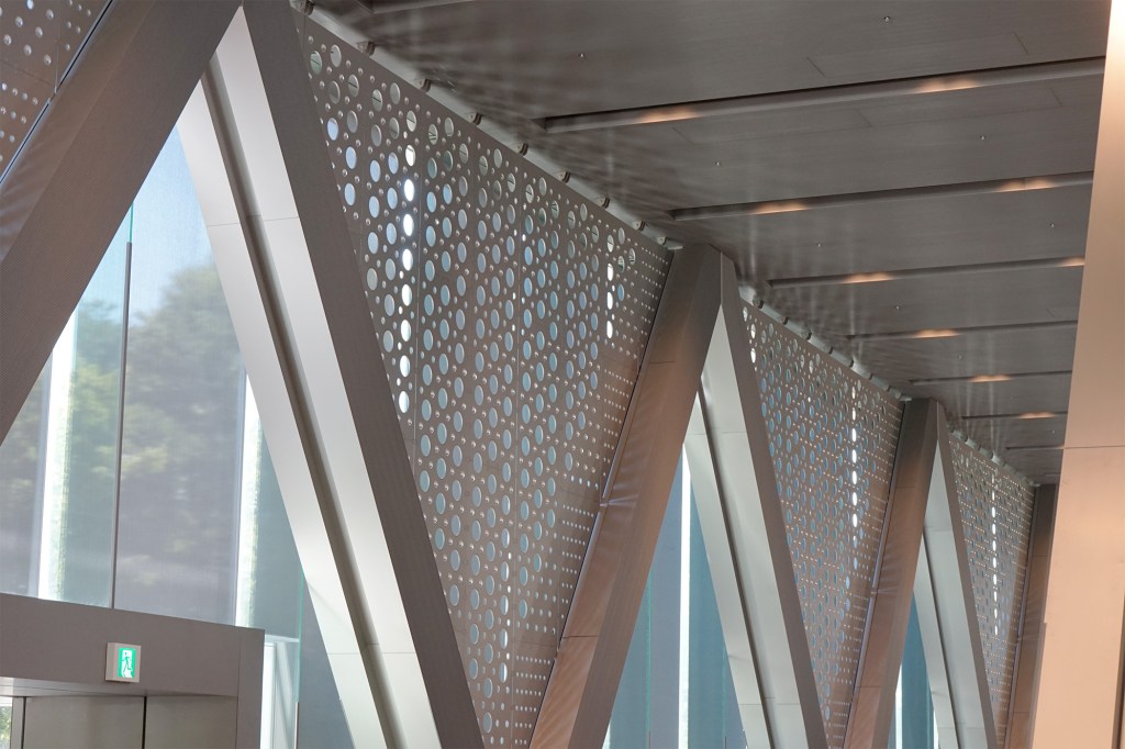午後的陽光映照在巨大的桁架之上撒下一點又一點的光跡,光暈裡有夏日的氣泡在漂浮,陰影的側緣下關係性的庭院一個又一個綻放。這裡的清晨裡飄盪著白河,白河裡是一片煥然的清澄好傾城。巨大的結構是關係流淌,澆灌著城市休日的青澀草原,徘徊的今日旋轉著躍動,舞動之間還是寧靜的泛黃縫隙捧起一進或一線的景色。